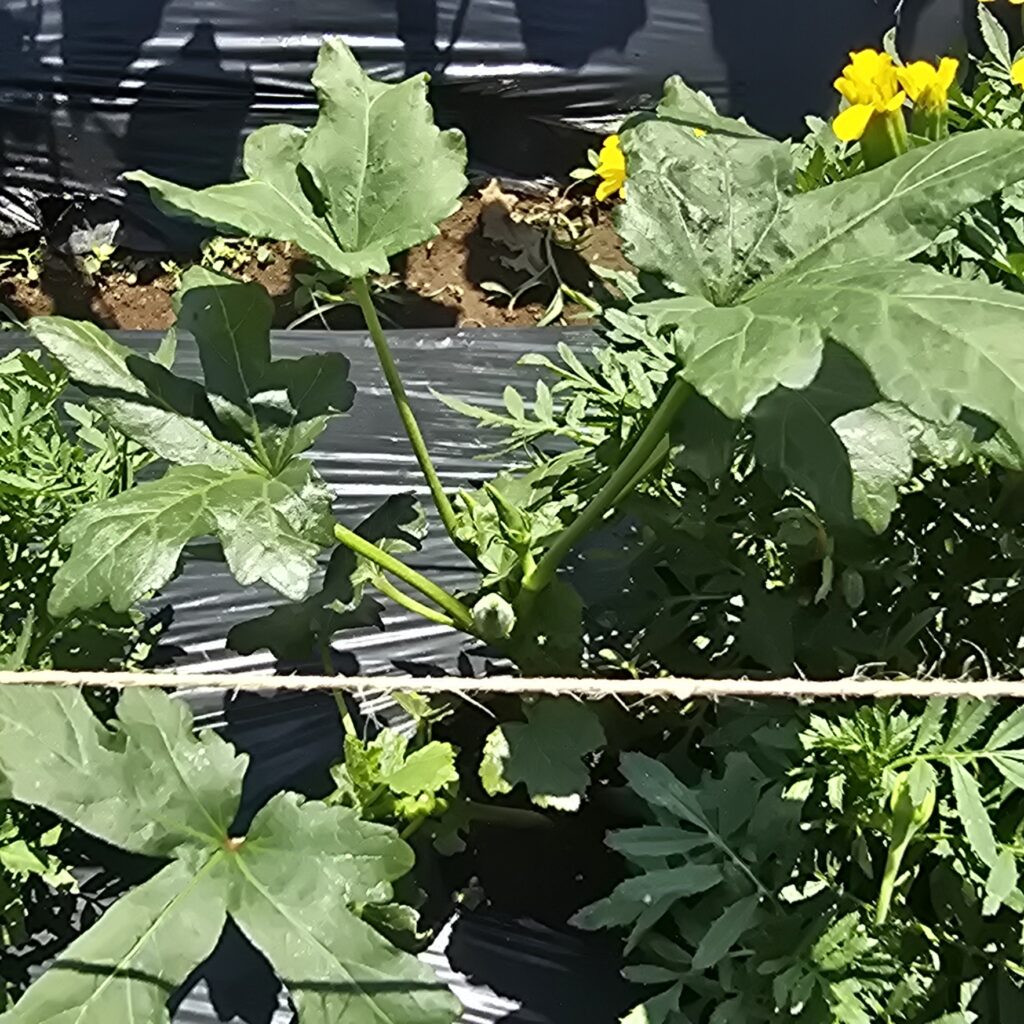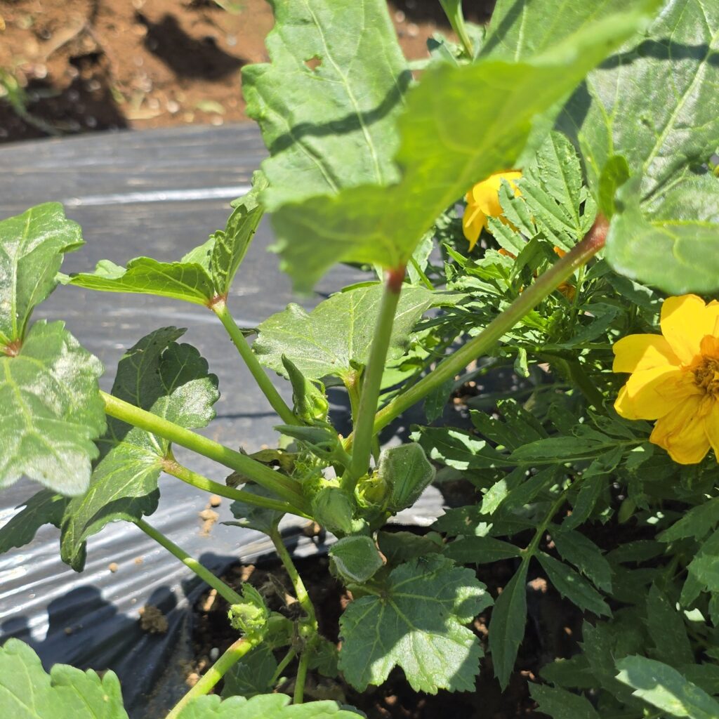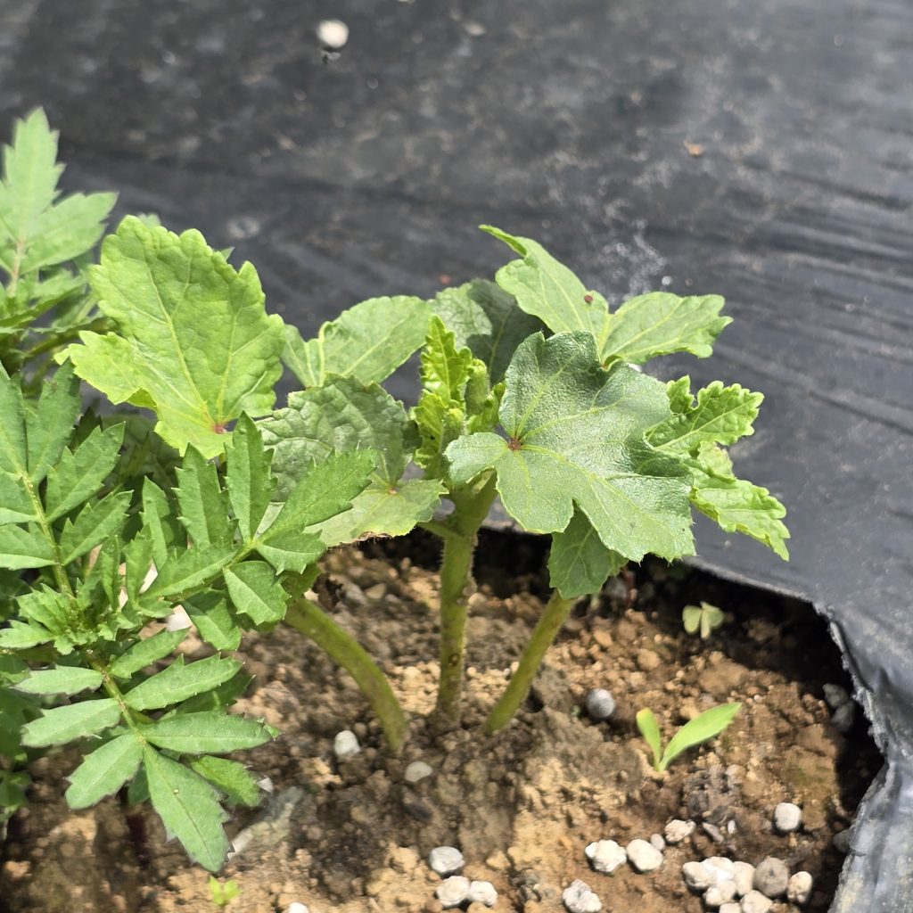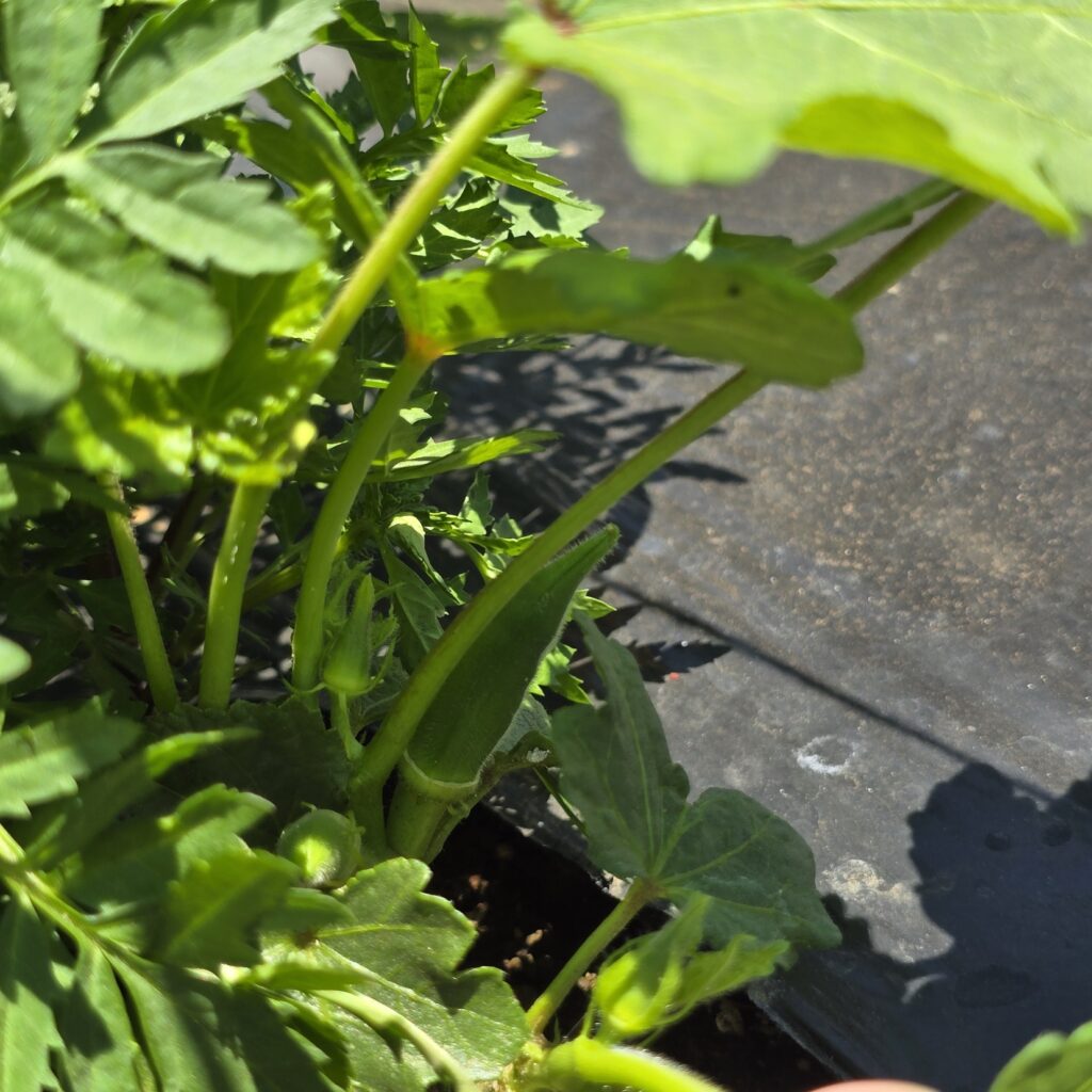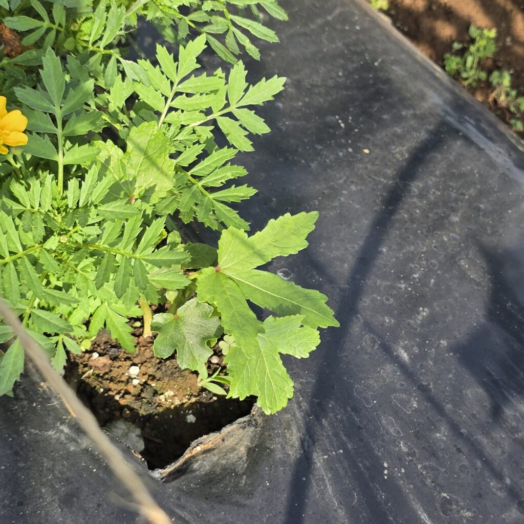 葉の色もしっかりしてきて元気そう。背丈はマリーゴールドに抜かれました。そして撮る角度変わってしまった…